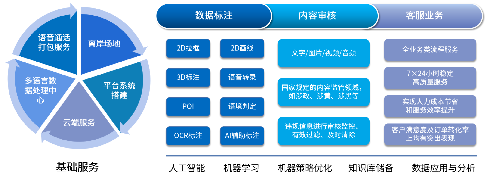 数字化运营服务聚焦互联网、金融、智能终端、能源科技等行业,为客户提供呼叫中心服务、金融后台服务和互联网相关服务等。近几年,公司数字化运营服务业务规模高速增长,服务团队规模不断扩大,目前已经在国内建立了多个离岸交付基地。拥有众多的行业伙伴、培训机构和合作院校等资源,致力为客户提供专业且高质量数字化运营服务,助力客户业务发展。